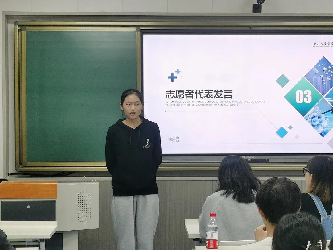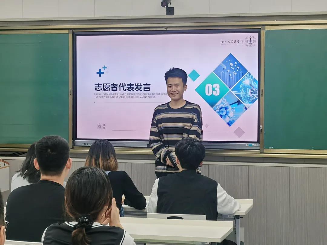 主席团成员杜璞对加入学生会的志愿者们表示热烈的欢迎,对学生会工作人员和志愿者提出三点要求:坚持求真务实,脚踏实地做事情;坚持学业为主核心,学习工作共进发展;坚持服务他人主线,团结协作共同成长,在学生工作中找到乐趣、增进本领、锻炼品格,为同学树立良好榜样。