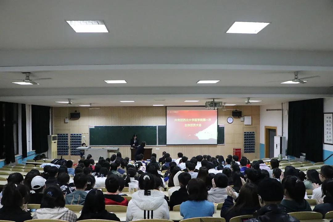 2021年11月26日19:00,共青团pg电子官方网站医学院第一次全体团员大会在太白校区7207教室和附属医院第一示教室同步进行,校团委副书记曹智、医学院党支部(直属)副书记杨涛、团支部(直属)书记梁靖和医学院144名团员参加了此次大会。大会由专职团干雷蕾主持。
