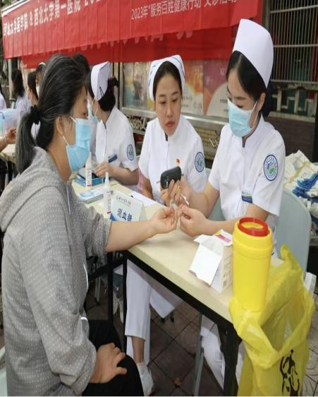 为深入贯彻落实党的二十大精神,坚持以人民为中心的发展思想,不断满足群众日益增长的医疗卫生需要,方便百姓在家门口享受到高质量医疗服务,在中秋国庆双节来临之际,医学院团委联合pg电子官方网站第一医院在西大新村社区开展健康义诊活动
