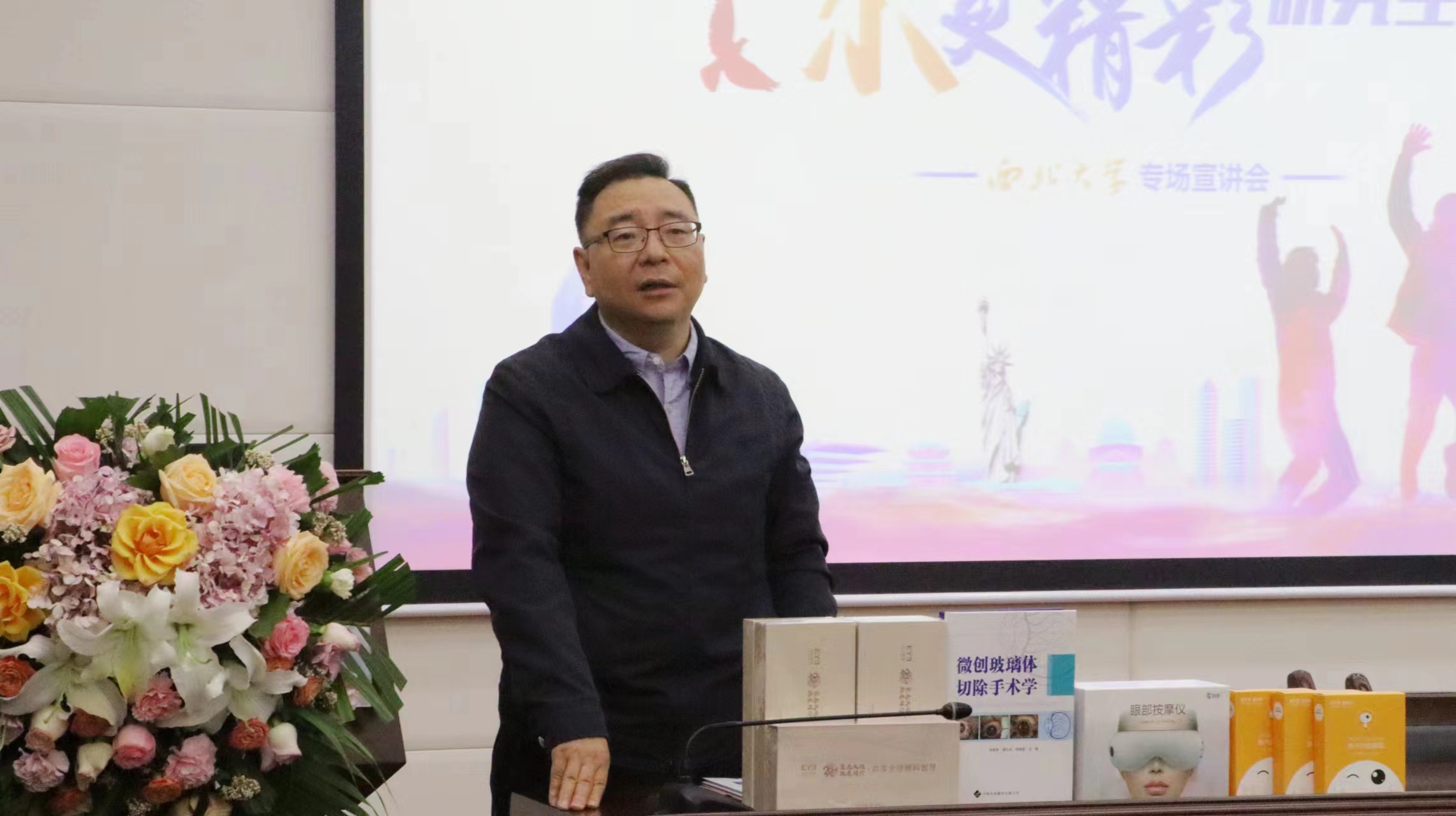 宣讲会上,爱尔眼科陕西省区人力资源总监刘小燕介绍了爱尔眼科集团的基本概况,宣传了爱尔眼科“校园大使”“眼科科普志愿者”等在校生合作培养计划,欢迎各位西大医学生、毕业生加入到眼科医疗事业的发展行列中来。