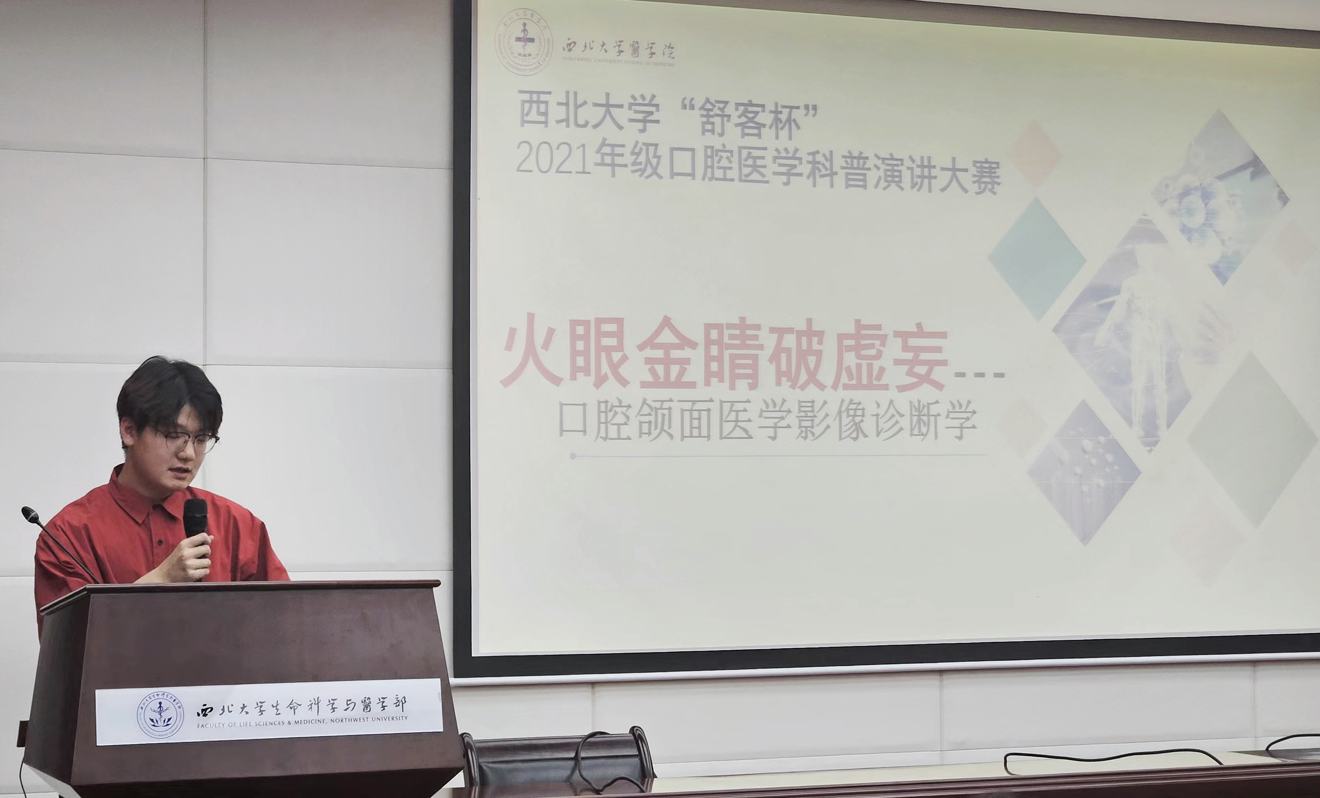 为提升口腔健康科普宣传能力,激发口腔医学学子学习兴趣,在实际行动中践行“医人报国,精诚济世”的院训精神,6月28日,医学院成功举办首届“舒客杯”口腔医学科普演讲大赛。学院院长赵钢、口腔医学系主任冯雪、教授李刚、口腔医学教学中心主任侯晓冲、pg电子官方网站出版社编辑王银存以及口腔医学系教师黄睿、张晓、董培媛担任大赛评委,2021级口腔医学专业29名同学参与本次大赛。