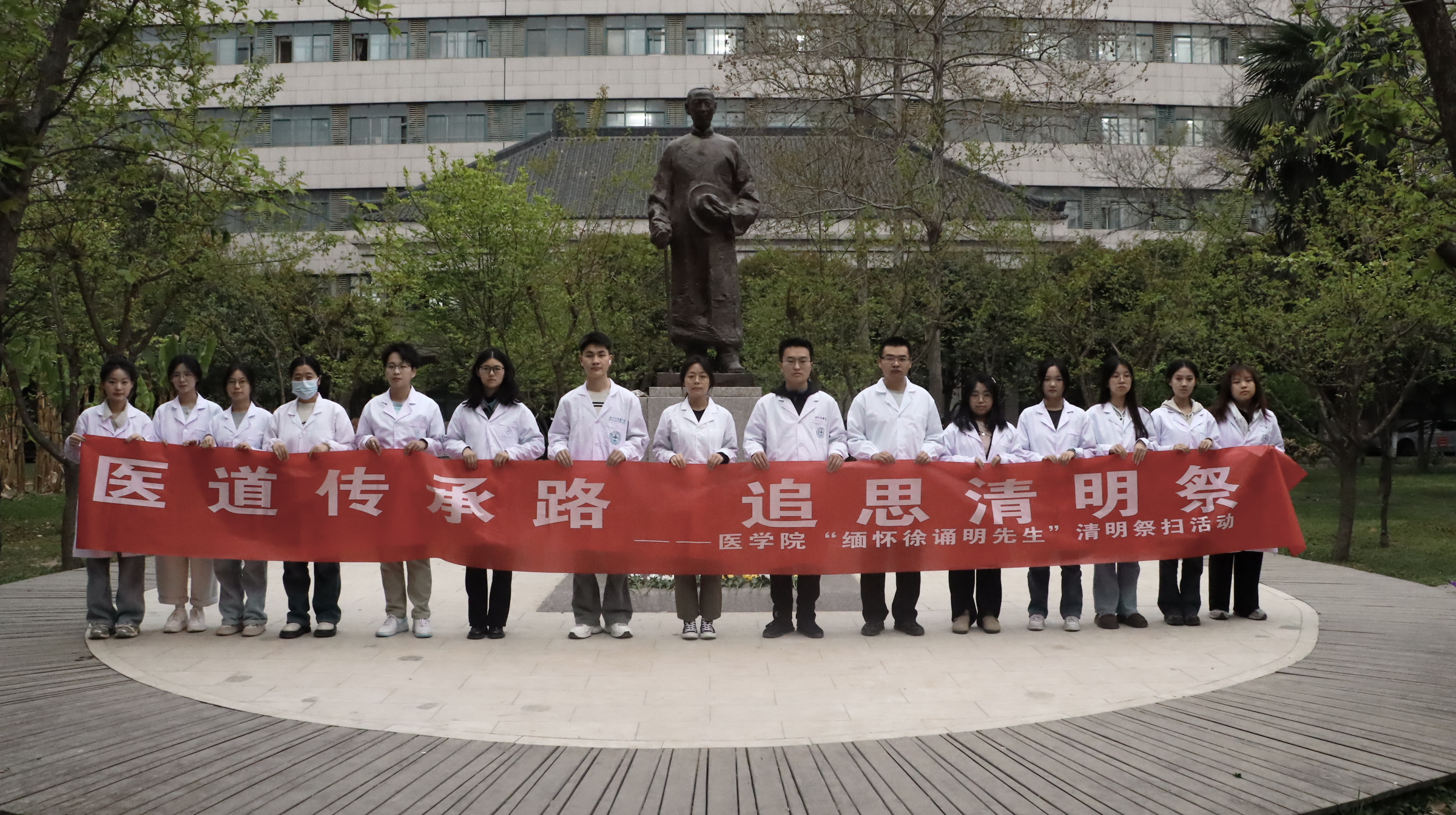 清明寄哀思,薪火永相传。4月2日,pg电子官方网站医学院在太白校区徐诵明先生雕像前举行“医道传承路,追思清明祭——缅怀徐诵明先生”主题祭扫活动。医学院师生代表共同参与,追思我国病理学奠基人、医学教育先驱徐诵明先生的卓越贡献,感悟其“精诚仁朴”的医者风范,传承百年医学教育的精神血脉。