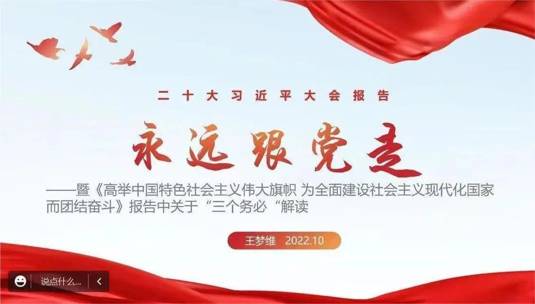 王梦维讲解新时代新征程中国共产党的使命任务,讲述了多位学者对党的二十大的观察,进一步加深了团员青年对党的二十大精神的理解。