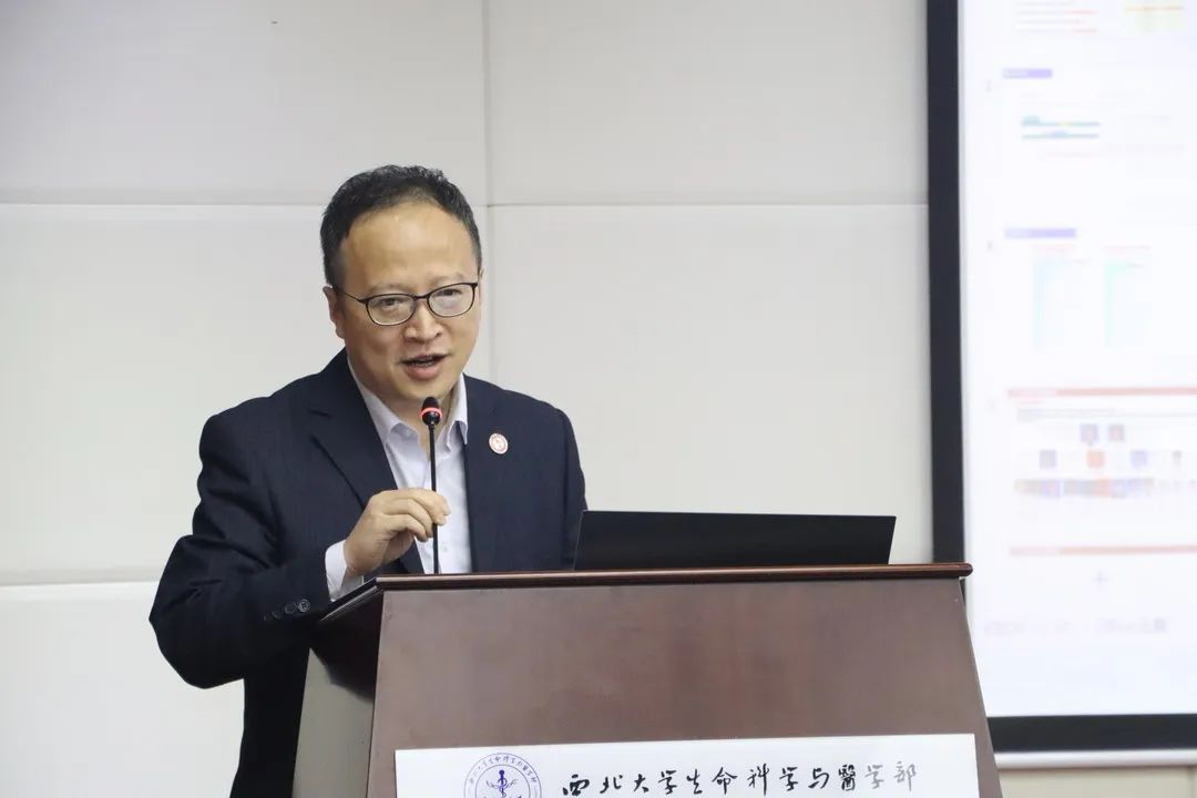 叶丰教授以病例与工程问题案例引入,为在场师生介绍了临床分子病理学专业的相关内容,展示了核酸全密封自建技术等标志性科研成果。