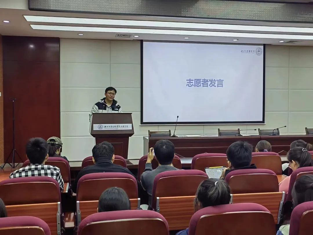 为深入学习贯彻党的二十大精神,切实推进学习习近平新时代中国特色社会主义思想主题教育活动实效,学习领悟习近平总书记提出的新时代宣传思想文化,本次会议首先由曹骋同学领学,围绕扎实推动教育强国建设进行阐述,他号召学院成员用党的创新理论统一思想、统一意志、统一行动,引导学院青年踔厉奋发,勇毅前行,争做堪当民族复兴重任的时代新人。