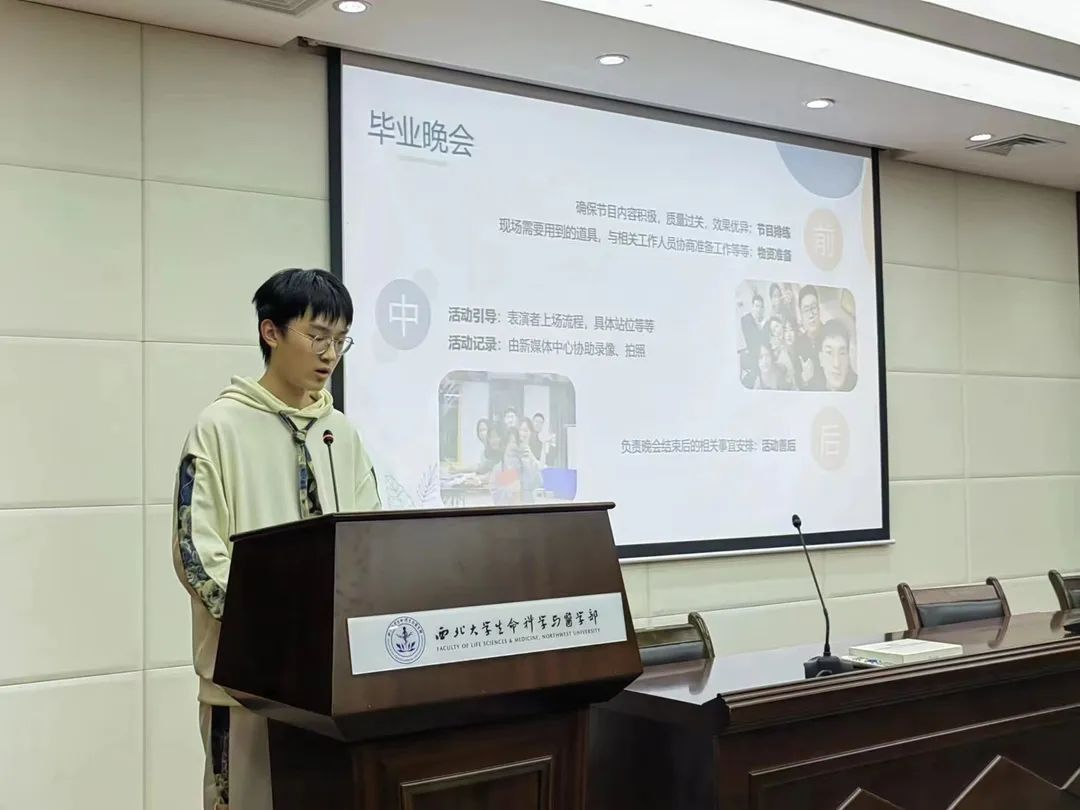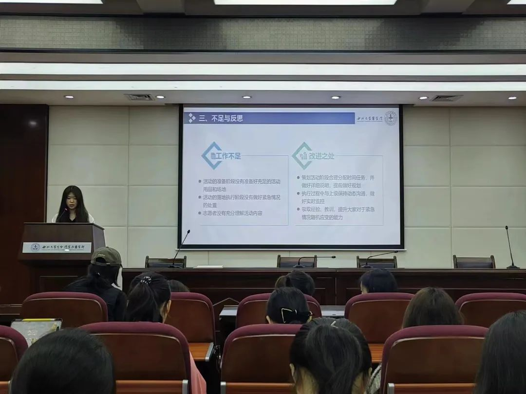 主席团成员王子琪分别从工作概述、活动成果、总结与展望三个方面向全体成员进行了医学院学生会的职务内容及要求的总结。同时,她对学生会全体成员的工作提出了四点期望:加强作风建设、注重工作计划性、深化团队协作、提高质量和实效。