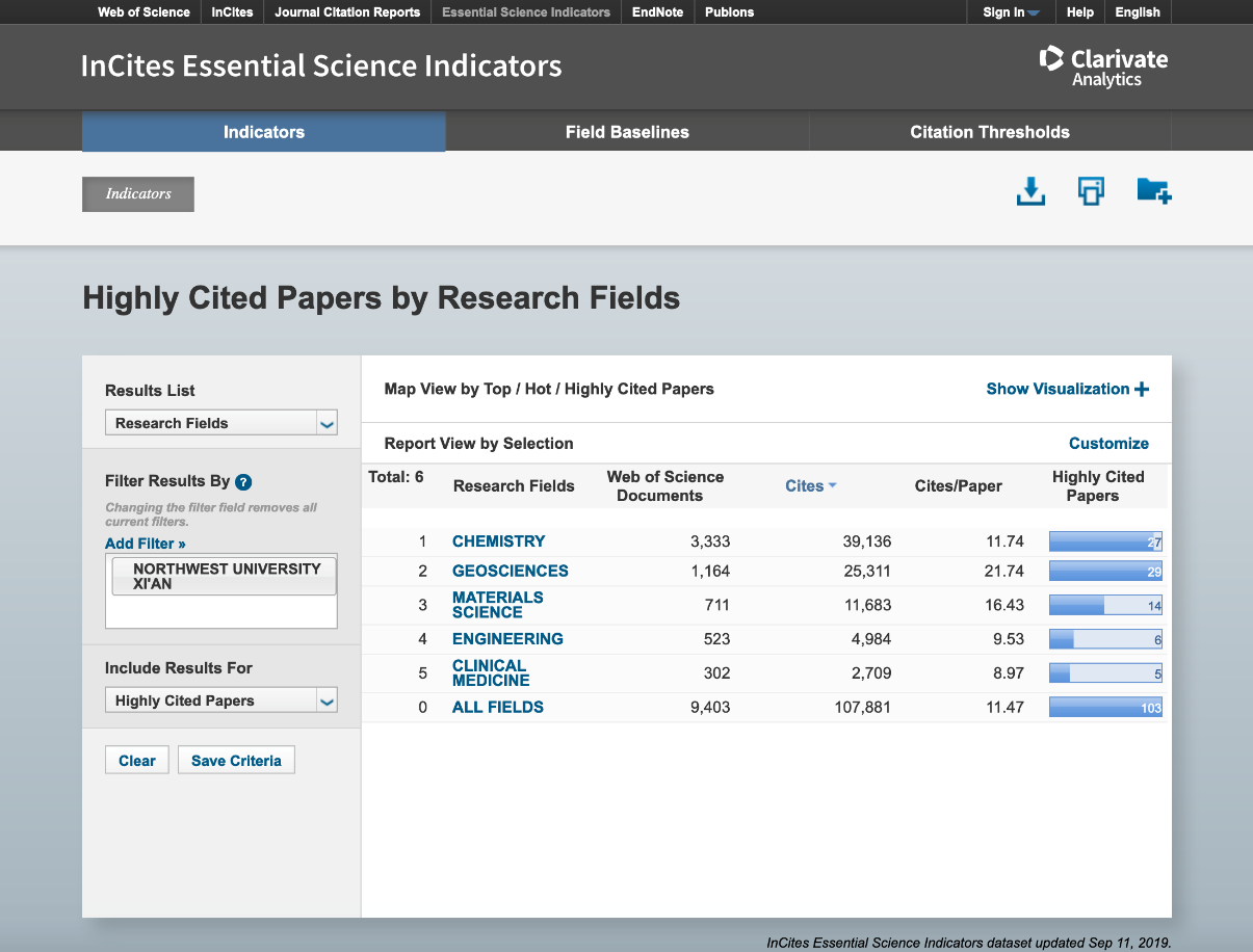 基本科学指标数据库(EssentialScienceIndicators,简称ESI)是衡量科学研究绩效、跟踪科学发展趋势的基本分析评价工具,已成为当今世界范围内普遍用以评价高校、学术机构、国家/地区国际学术水平及影响力的重要评价指标工具之一。ESI数据库共分22个学科领域,是基于科睿唯安(ClarivateAnalytics)WebofScience(SCIE/SSCI)所收录的全球12000多种学术期刊的1000多万条文献记录而建立的计量分析数据库。
