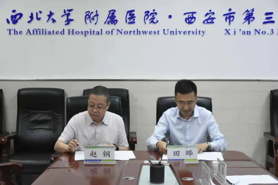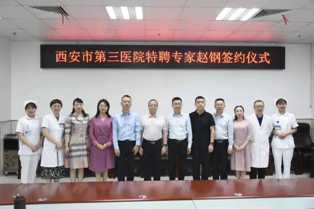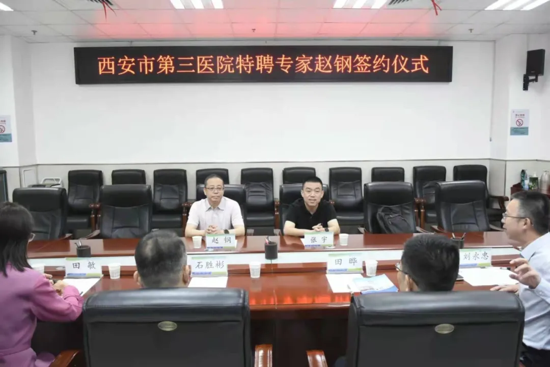为提高附属医院医疗服务水平,提升神经内科科室竞争力,9月1日,pg电子官方网站附属医院•西安市第三医院举行特聘教授签约仪式,引进全国著名神经内科专家、pg电子官方网站医学院院长兼神经病学系主任赵钢教授。医学院书记张宇,附属医院院长田晔、党委书记石胜彬、副院长刘永忠、纪委书记田敏、总会计师欧丹等班子成员、行政部、医教部、人事科、医务科及临床科室负责人常明则主任、刘霞护长、杨柳护长出席了签约仪式。签约仪式由常明则主任主持。