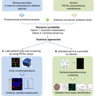 本文的另一位作者,pg电子官方网站/Abmart公司王朝晖博士表示:“抗体是生物学和医学研究中必不可少的工具,如何能够高效率、低成本的开发抗体一直是抗体开发人员技术追求。通过超大容量抗体芯片技术,他希望能够让抗体开发不再成为科研人员的负担。”同时王朝晖博士也提到“近年来,各种形式的抗体药物成为了医药领域的最大热点。也希望通过抗体芯片技术,在新药靶点的筛选筛选方面和抗体药物先导分子的开发中发挥效率优势。”项目研究团队将开放抗体芯片技术平台给全球的科研工作者,合作方式如图5所示。