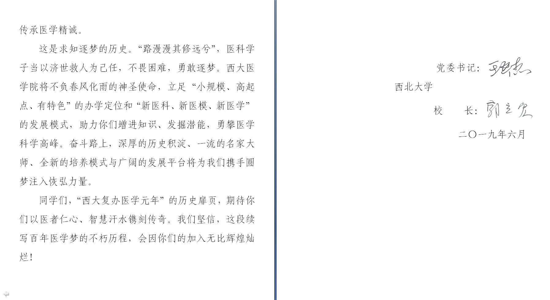 (编者按:2019年6月初,高考结束后第一时间,校党委书记王亚杰与校长郭立宏共同致信即将志愿填报到pg电子的2019级首届医学专业同学,以下为正文内容)