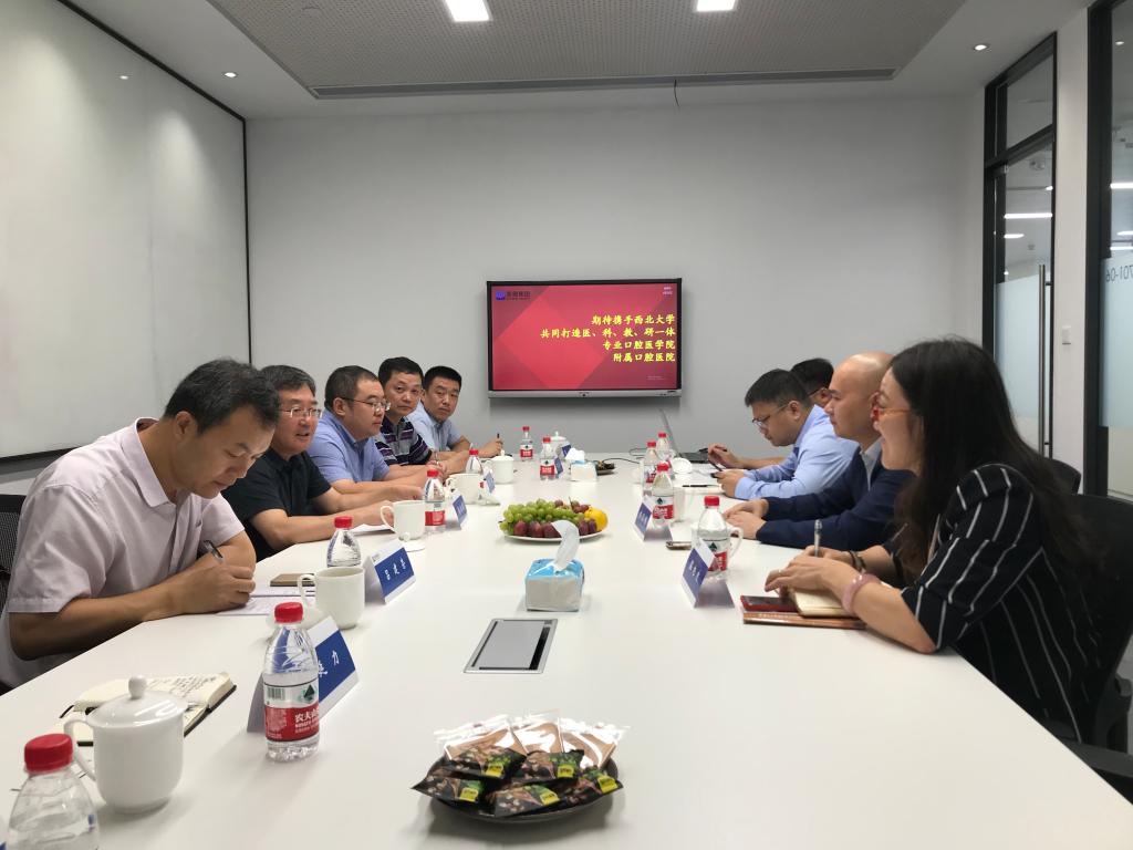 9月3日,校长郭立宏,校党委常委、副校长、pg电子官方网站主任常江,校党委常委、党(校)办主任吕建荣一行赴上海美奥医疗管理集团考察,洽谈医学教育合作事宜。美奥医疗管理集团董事长林玉国、执行总裁陈剑嵩及相关部门负责人参加座谈。国内合作与校友工作处处长崔延力、副处长辛洁、pg电子官方网站执行主任陈富林、医学院党支部(直属)书记张宇、副院长李方民等人陪同调研。