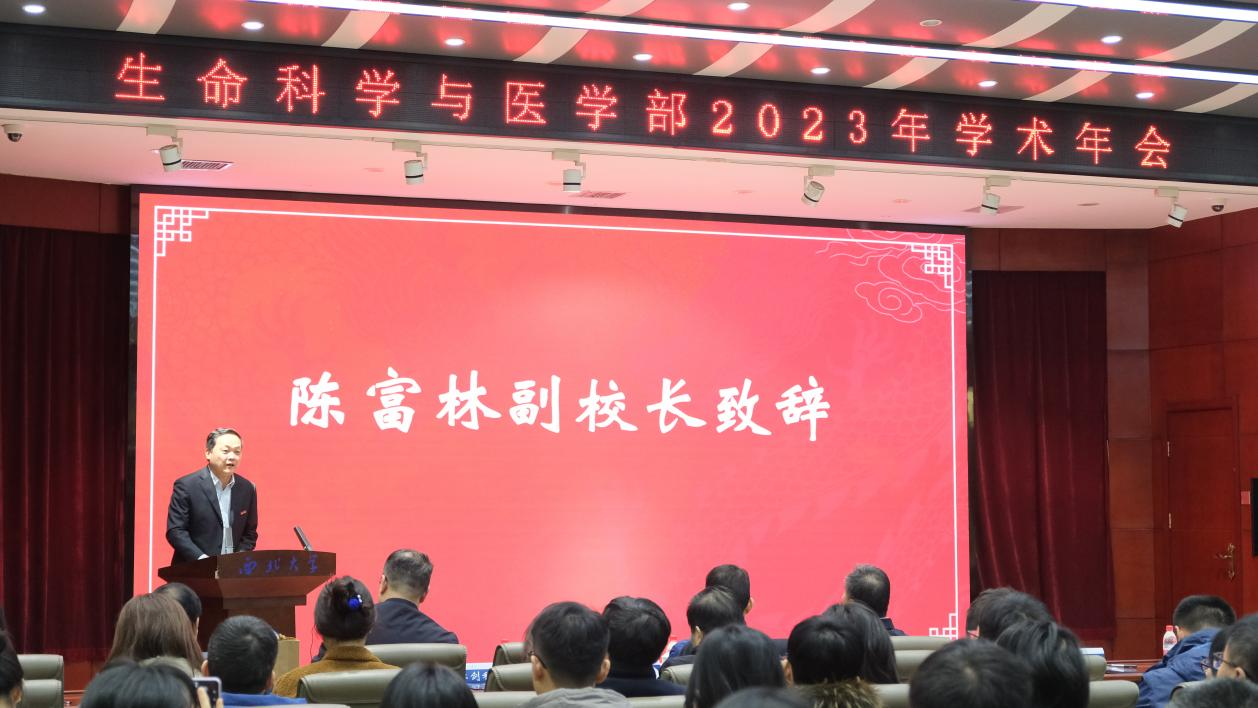 1月15日,pg电子官方网站2023年度总结表彰暨2024年学术年会在太白校区萃园多功能报告厅举办。校党委常委、副校长,pg电子官方网站主任陈富林出席并致辞,教务处、科技处、研究生院、实验室处负责人与学部班子成员,以及学部教职工代表、附属医院教职工代表、学生代表等200余人参加了会议。会议特邀西北农林科技大学谢寿安教授,我校地质系张志飞教授,化材学院樊海明教授作了报告。