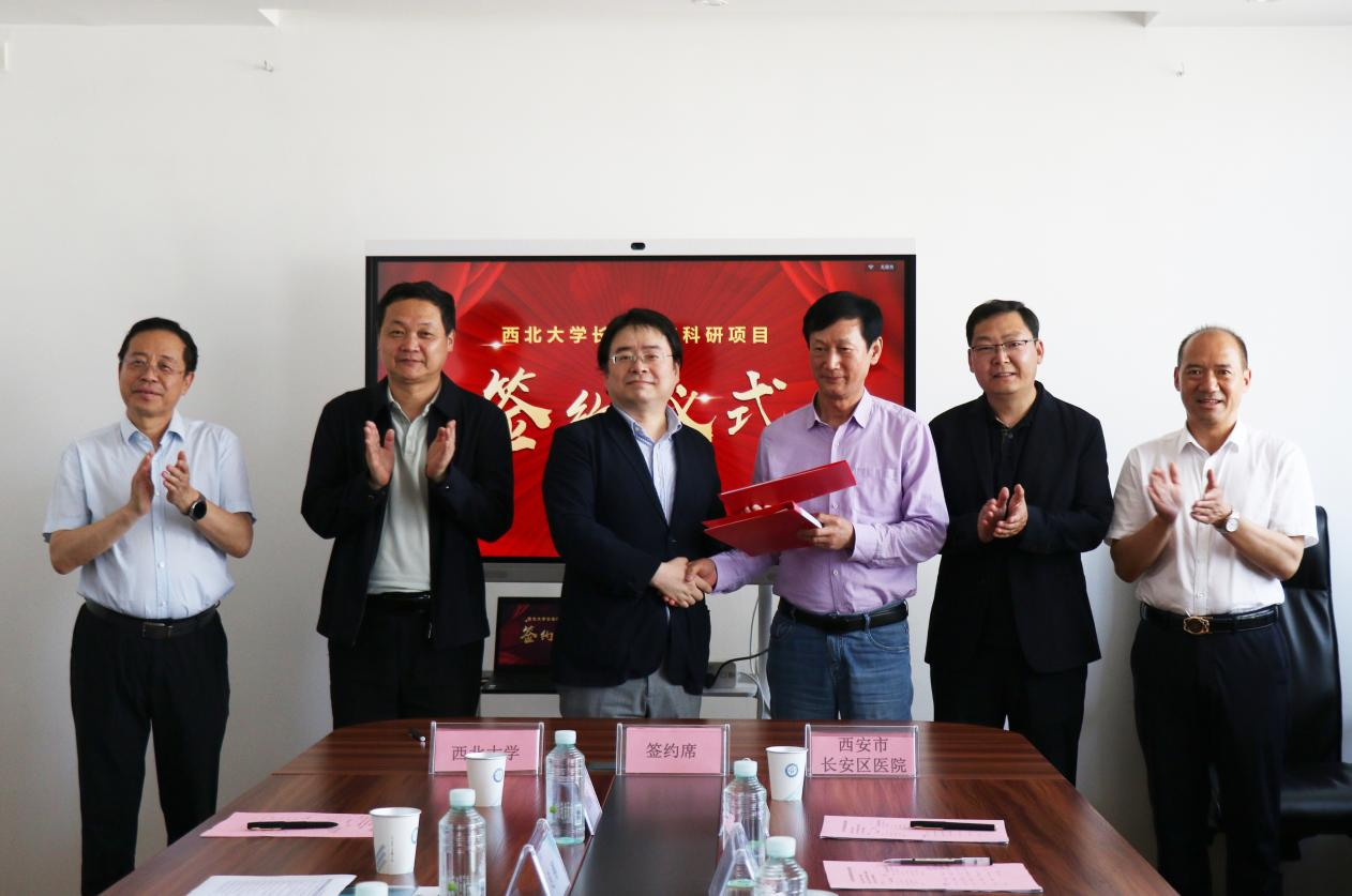 4月25日下午,我校医学院与长安区医院科研项目合作协议集中签约仪式在长安区医院双创中心举行。长安区医院院长胡明军,党委书记、副院长彭安海,我校党委常委、副校长、pg电子官方网站主任陈富林出席签约仪式。学校科技处、医学院等相关部门负责人及合作项目专家团队负责人参加签约仪式。