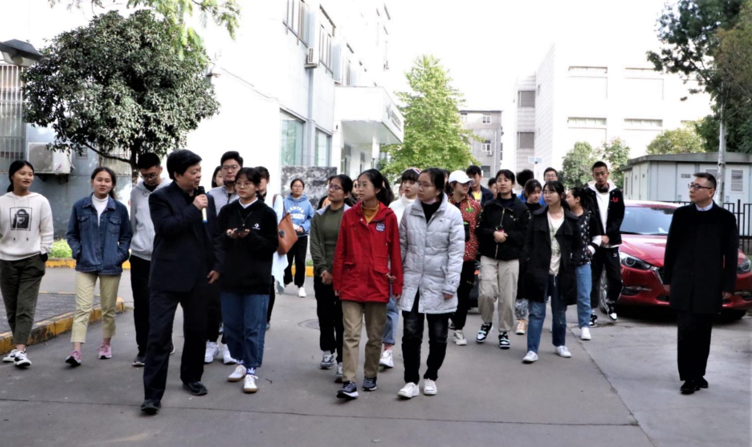 姚远教授的校史讲座分两个环节进行。首先,他带领着“徐诵明医学卓越班”的同学在太白校区校园里参观遗址、纪念碑、代表人物雕塑等进行现场讲解,随后,回到教室,进行“pg电子官方网站医学的前世今生”学术讲座。