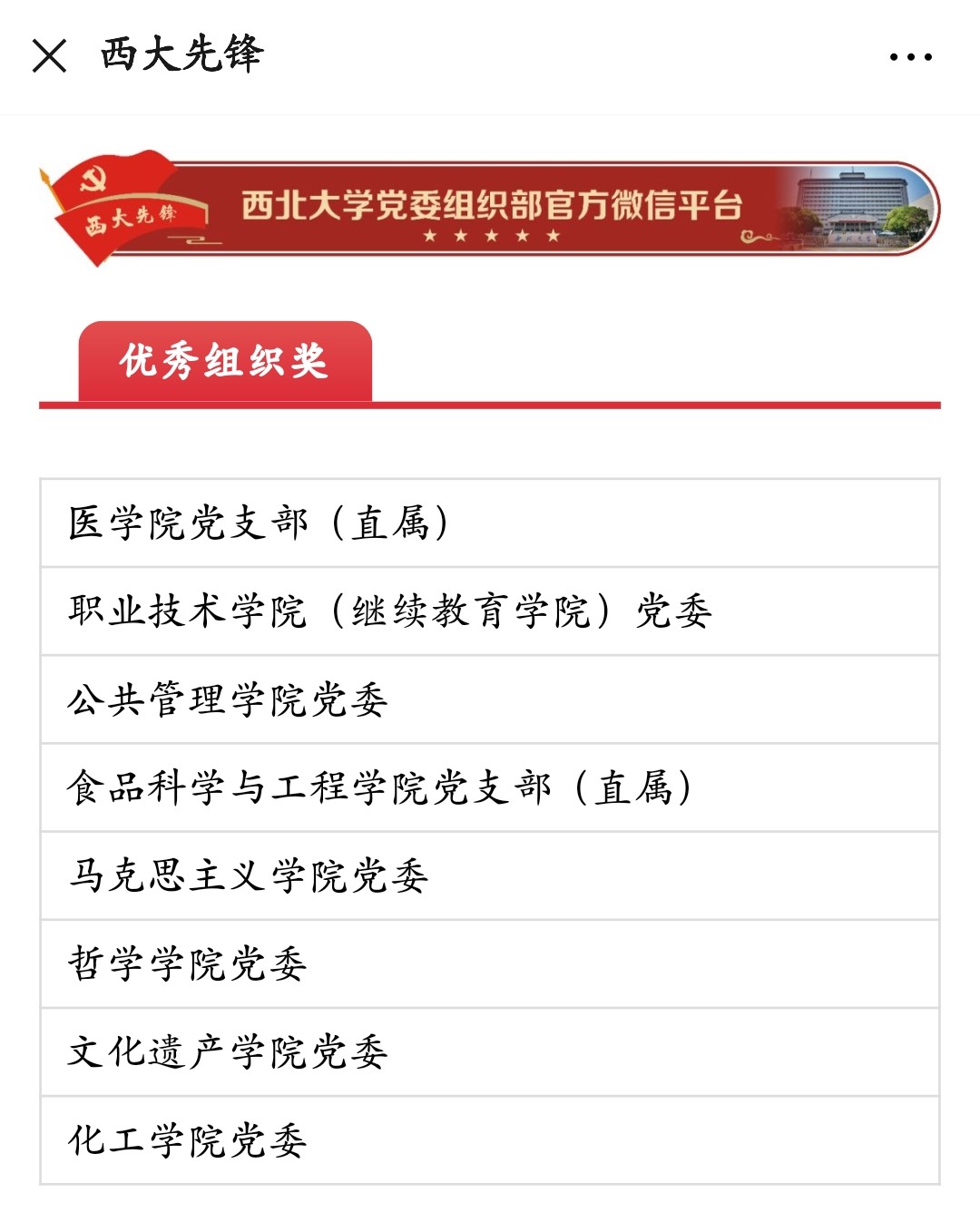 2019年10月,医学院党支部(直属)在学校“不忘初心、牢记使命”主题教育网络知识竞赛活动中获“优秀组织奖”。