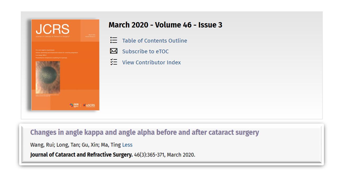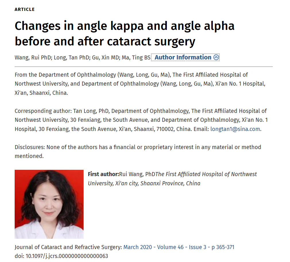 pg电子官方网站附属第一医院(西安市第一医院)自2010年开展屈光白内障手术,致力于为患者提供精湛的医疗技术和理想的手术效果,10年来为数以万计的白内障患者带去了全新的视觉体验。近期,中心屈光白内障团队临床研究成果发表于JOURNAL OF CATARACT AND REFRACTIVE SURGERY杂志。该杂志是美国白内障和屈光手术学会(ASCRS)和欧洲白内障和屈光外科医师学会(ESCRS)官方期刊,内容涵盖眼前段手术的各个方面,包括临床研究、实用技术、重要案例、评论及基础研究等。