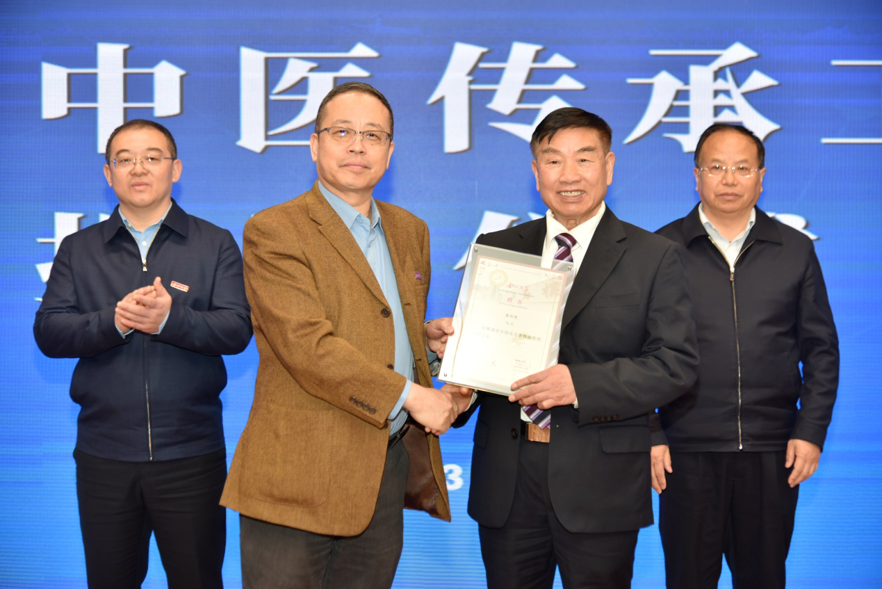 仪式上,我校医学院负责人为黄传贵教授颁发聘书,铜川市卫健委负责人宣读设立黄传贵中医传承工作室的决定。常江与李荣共同为黄传贵中医传承工作室揭牌。仪式结束后,黄传贵教授为与会人员作了学术报告。