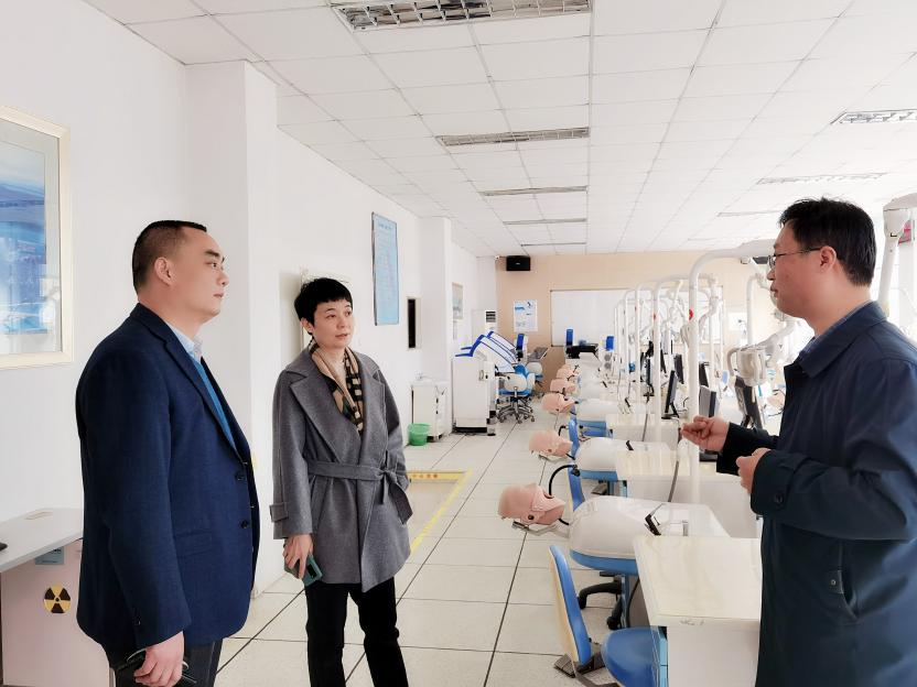 会议结束后,教研室成员前往空军军医大学口腔医院,参观口腔医学实验室、调研口腔学科体系建设情况。空军军医大学国家级口腔虚拟教学中心侯晓冲主任介绍了口腔医学的课程安排、口腔仿真头模、技工操作等教学实验室的设备情况,讲解了口腔模拟教学系统的用法。为学院教学实验室的建设提供了有利的参考。