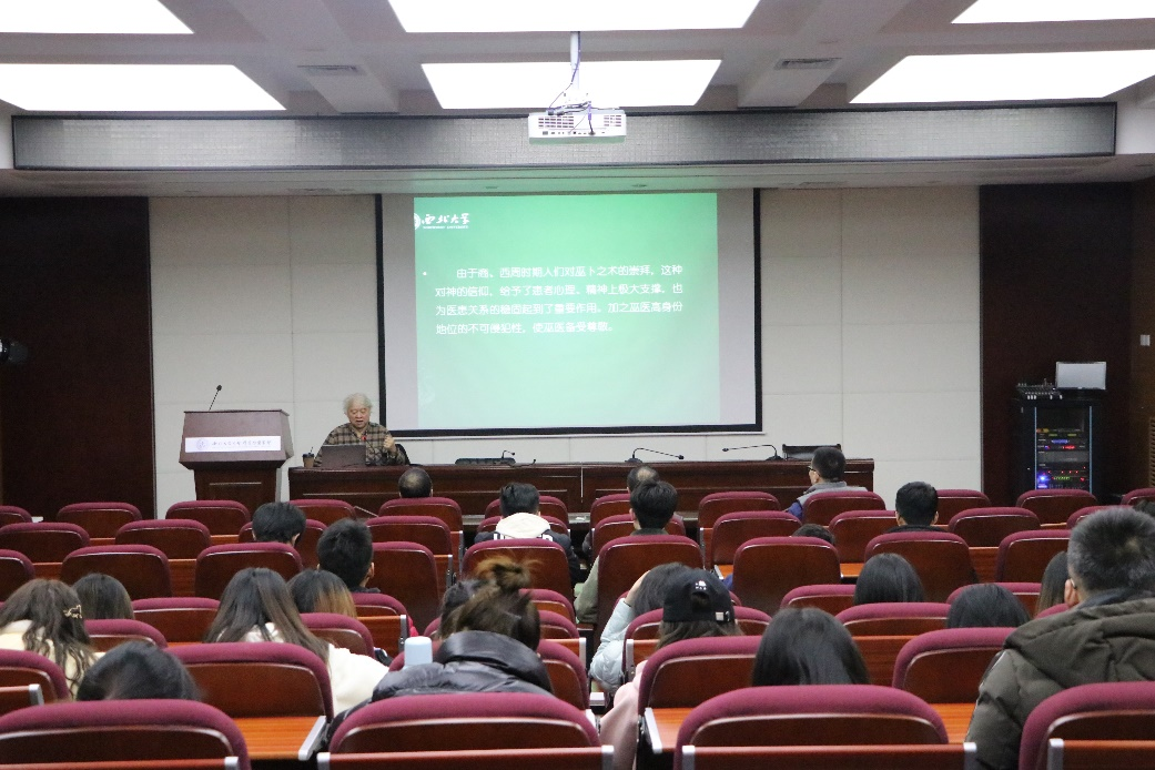11月26日晚,生命科学与医学大讲堂邀请文化遗产学院赵丛苍教授作了题为“解读医学考古学”的学术报告,医学院院长赵钢及学部师生代表参加会议,会议由副院长李方民主持。