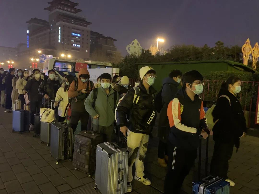 1月20日凌晨6时,太白校区第一辆护送返家学子的爱心车驶向西安南站,拉开了太白校区三千余名学子暖心回家的序幕。