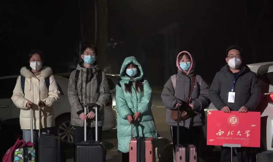 学生工作干部孟庆彬、范铭沁、米鑫、王君睿、雷蕾分别带领返家学生前往西安站、西安北站。