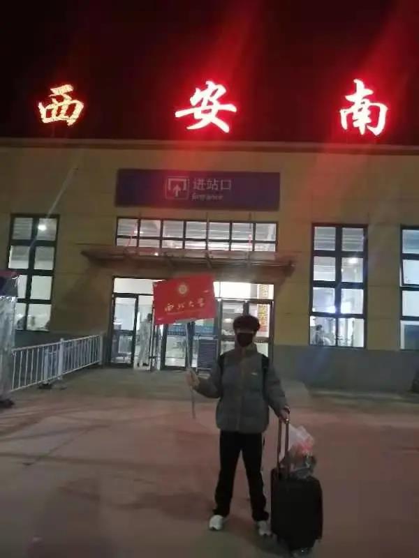 化工学院党员志愿者王向旭老师护送太白校区第一名返家学子前往西安南站。