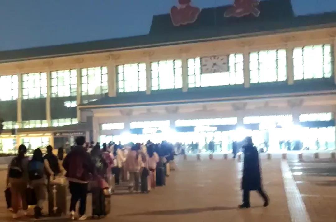 第二日返家学生首班车在学生工作干部魏秦星、李子明、范铭沁的带领下奔赴西安北站
