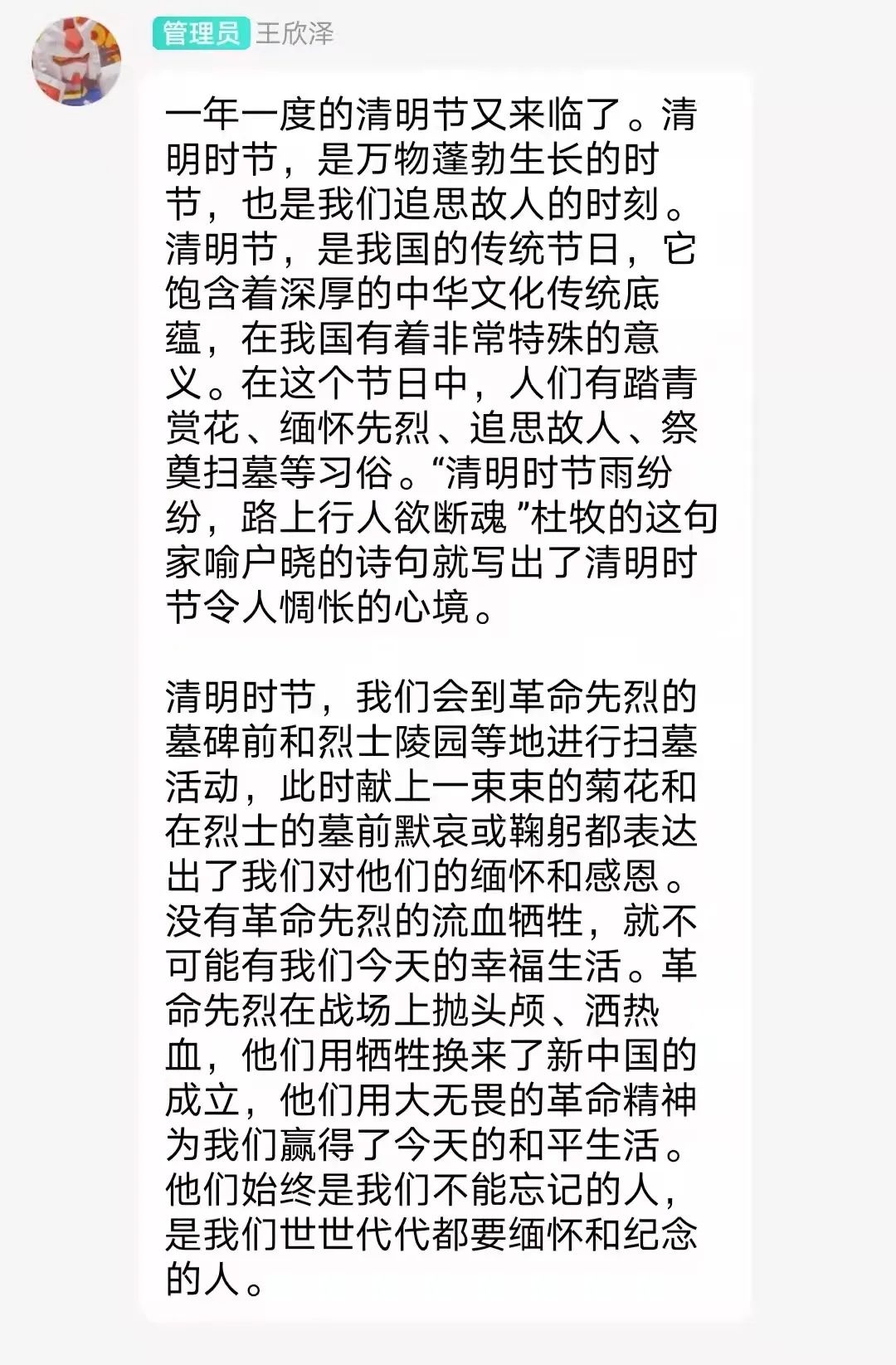 当前疫情防控形势严峻,为寄托哀思,学院组织学生参加云端扫墓活动。利用中华英烈网、退役军人事务部门户网等网络平台,共同学习英烈的英雄事迹,发表祭奠感言,激发学生对革命先烈的崇敬和怀念之情。