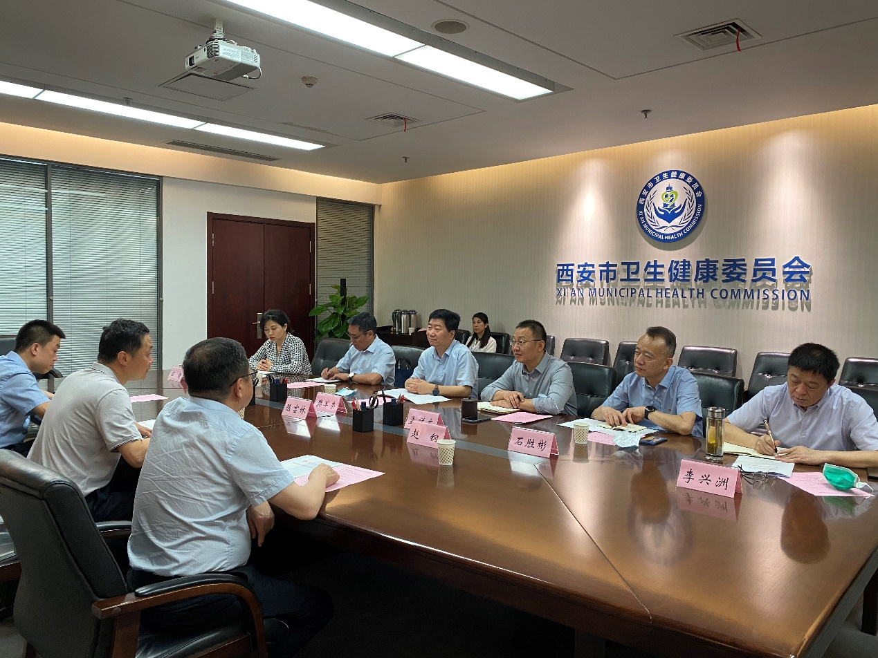 5月27日,校党委常委、副校长、pg电子官方网站主任陈富林一行赴西安市卫生健康委,就医学教育建设工作进行座谈交流。西安市卫生健康委党委书记樊军荣、市保健局局长孟祥东,医学院院长赵钢、书记张宇及双方相关部门、附属医院负责人参加座谈。