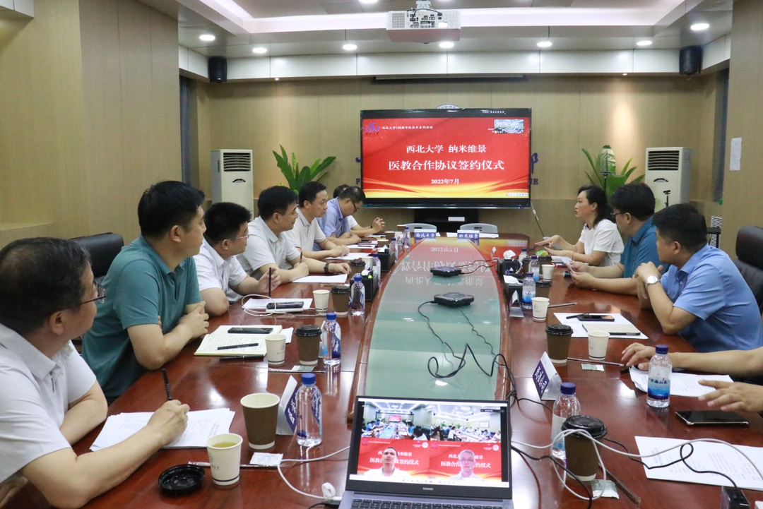 7月13日下午,纳米维景公司一行来校洽谈合作并签署合作协议。校党委书记王亚杰,校党委常委、副校长吴振磊,纳米维景公司西区总监潘江、科研总监王程以及我校科技处、国内处、医学院等相关单位主要负责人出席,纳米维景公司CEO李运祥、副总裁米弘斌线上参加了签约仪式。签约仪式由校党委常委、副校长,pg电子官方网站主任陈富林主持。