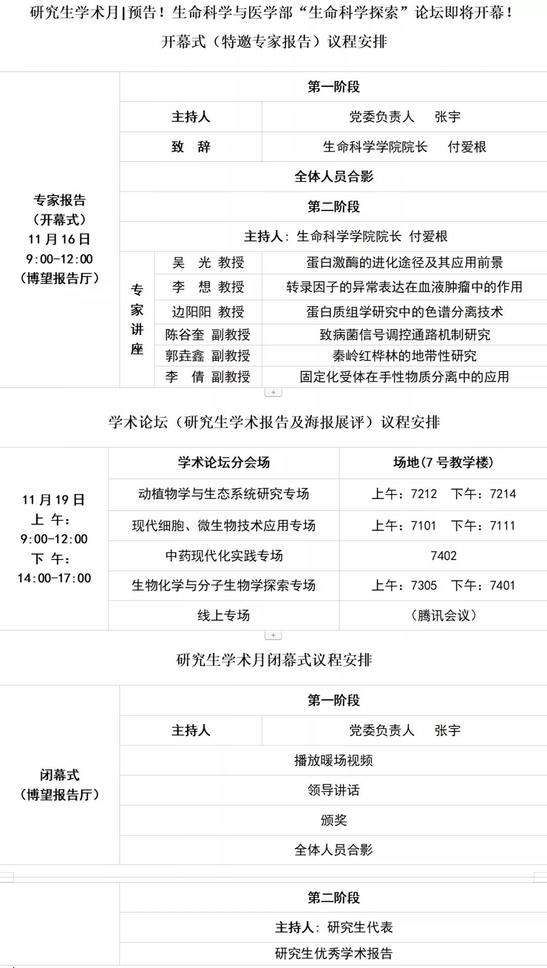 研究生学术月 | 预告!“生命科学探索”论坛即将开幕!