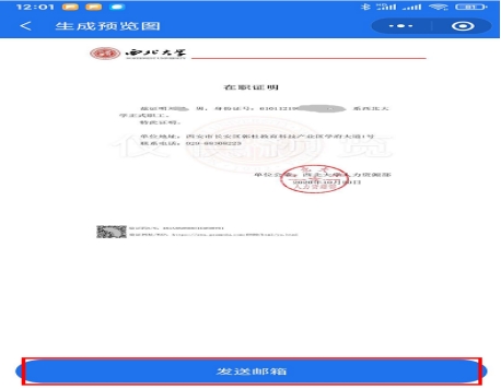 5.生成的证明文件可以通过点击文件直接发送给微信朋友或保存图片,如需发送邮箱则有收费要求,请谨慎操作。