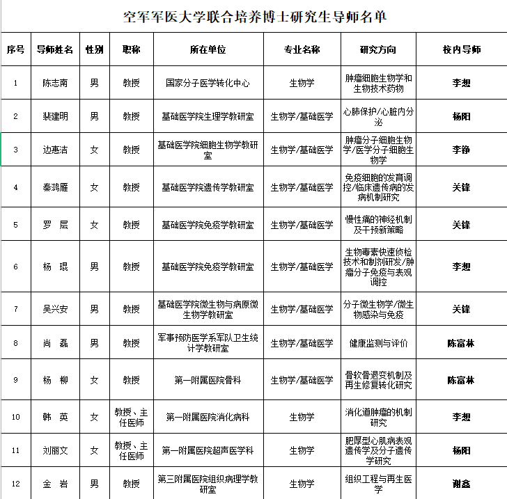 空军军医大学联合培养博士研究生导师名单.xlsx